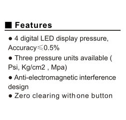 -- Three pressure units available ( Psi, Kgf/cm2 , Mpa)